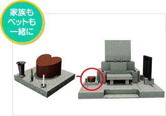 ◆ご一家のお墓を新築する際に、人もペットも骨壺で納骨できる特許工法設計プランです。ペットをご供養されている方の経費削減を考慮しました。
